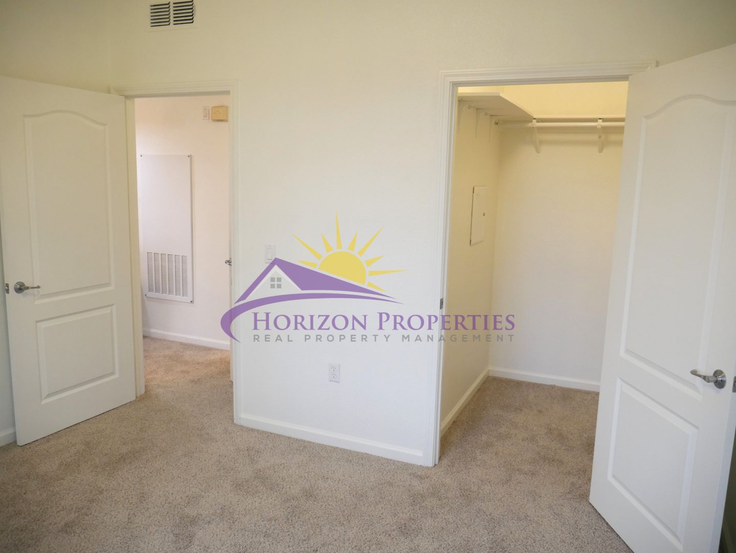 The laundry room is located in a hall closet and comes equipped with washer and dryer. The one-car garage has an automatic door opener and there is an additional assigned parking space. There is a sprinkler system for fire safety. This home is located in the Natomas Unified School District, in a community with pool, spa, clubhouse, and gym. There is no overnight parking without a permit.