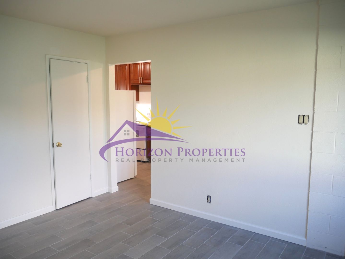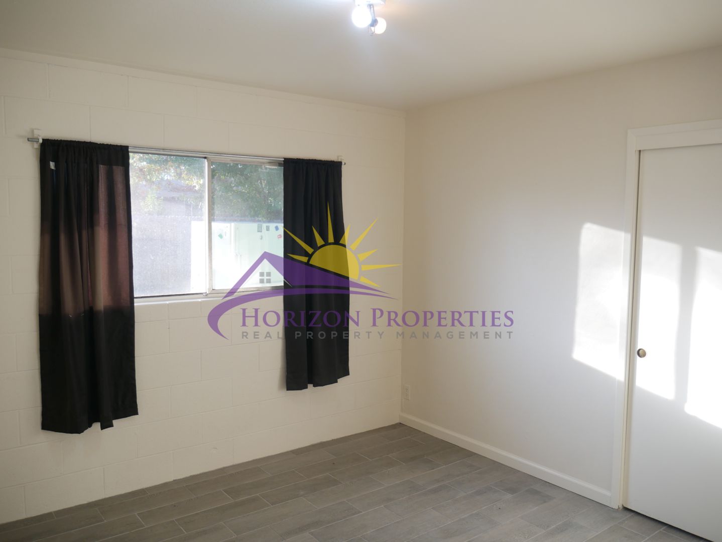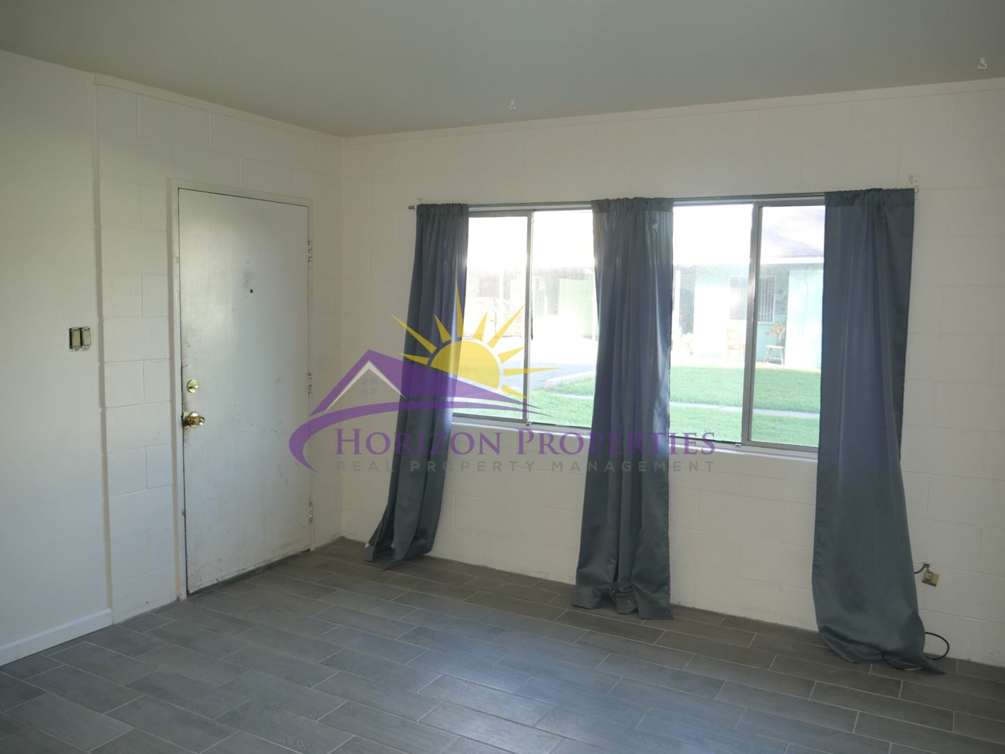 Near Stockton Boulevard on 15th Avenue in City Acres, Tahoe Park, Sacramento, this cozy one-story apartment offers two bedrooms, one full bathroom, fresh paint, new tile flooring, and curtains throughout 760 square feet of living space. The living room has a coat closet.