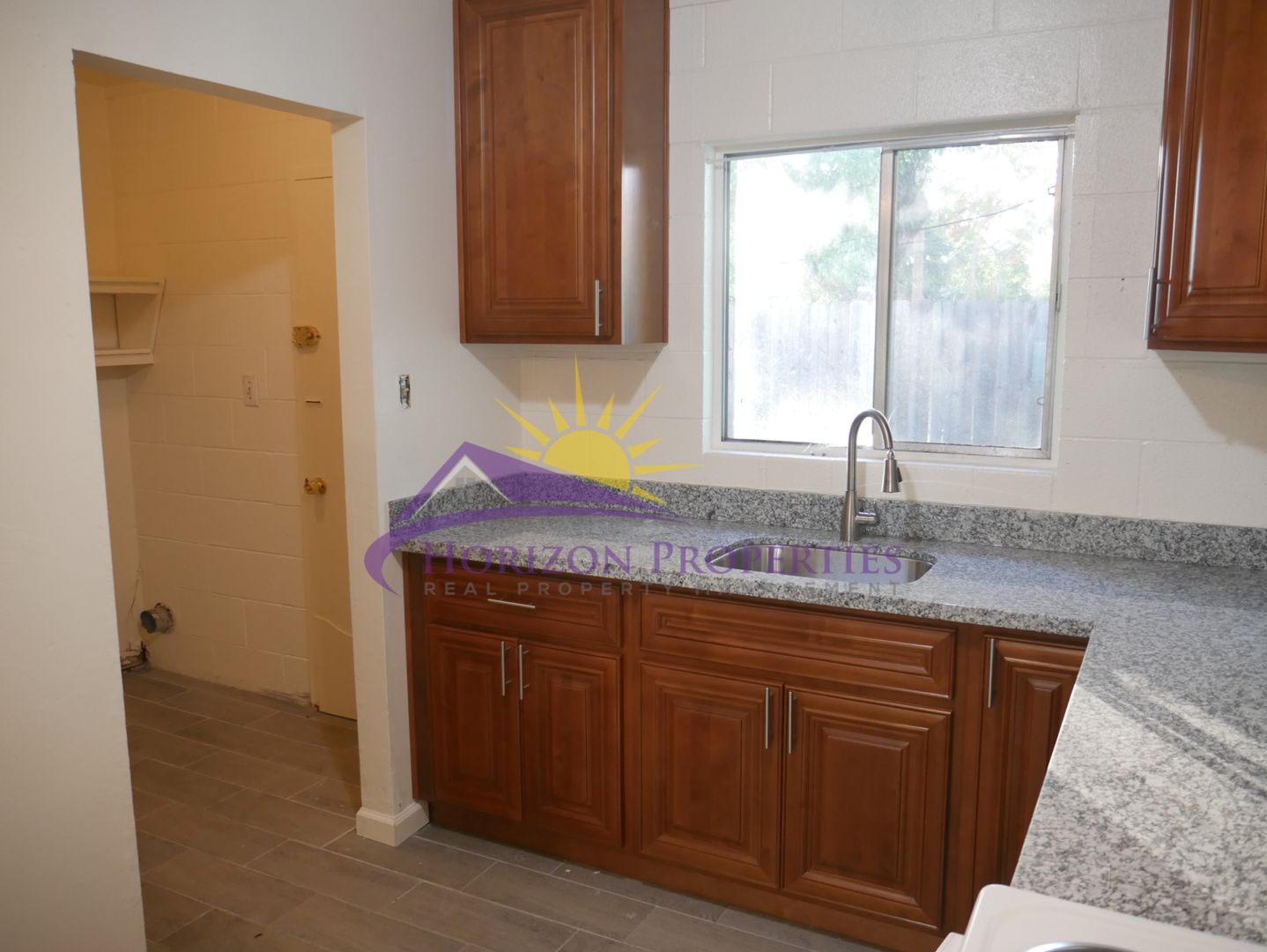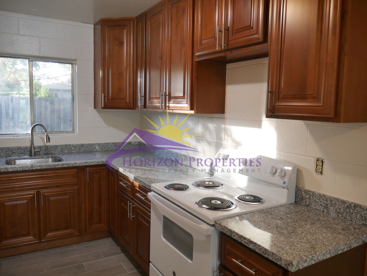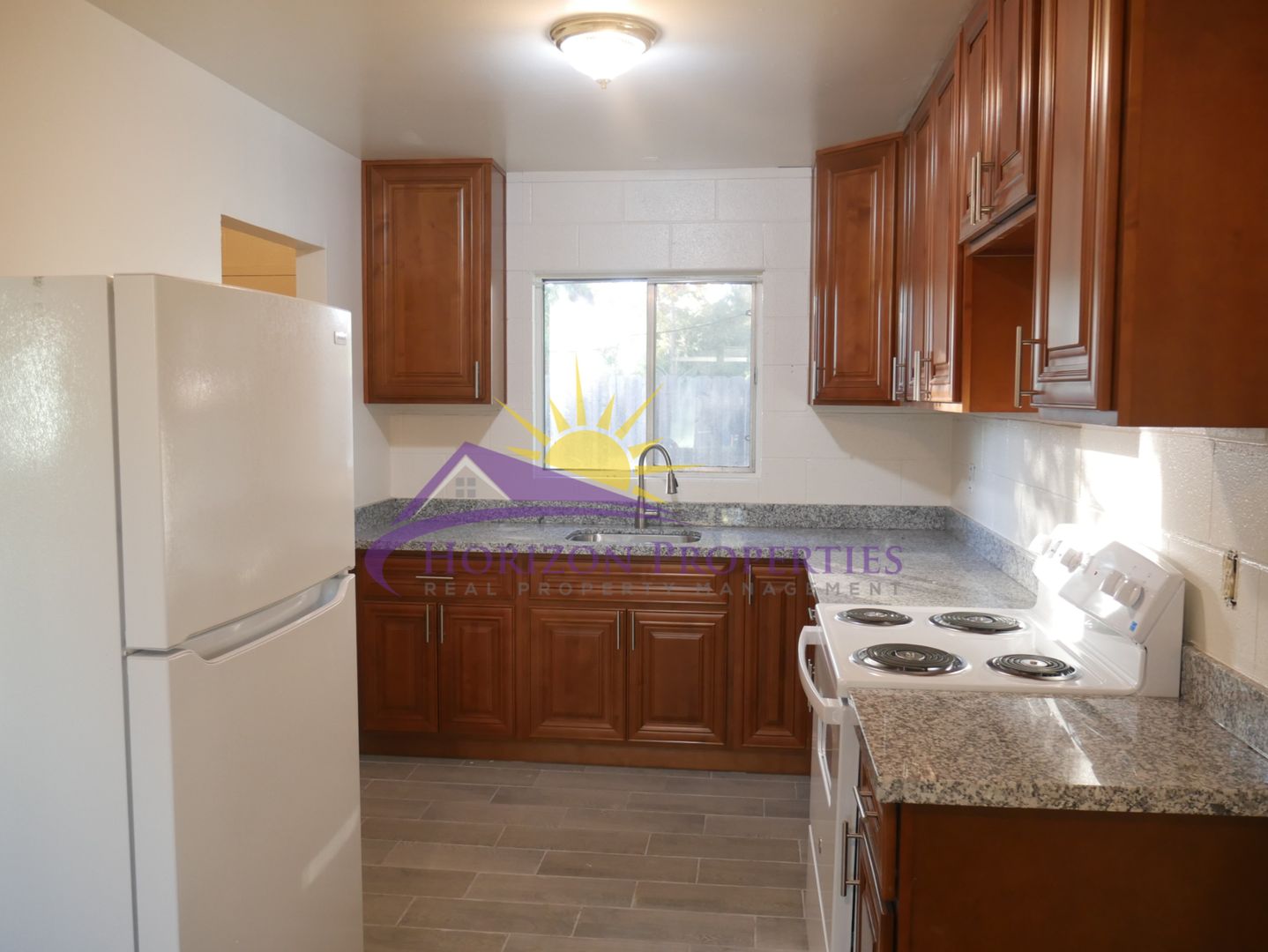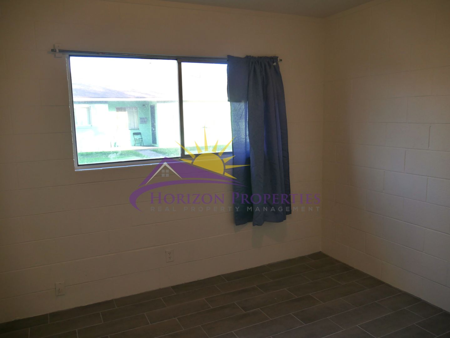 Near Stockton Boulevard on 15th Avenue in City Acres, Tahoe Park, Sacramento, this cozy one-story apartment offers two bedrooms, one full bathroom, fresh paint, new tile flooring, and curtains throughout 760 square feet of living space. The living room has a coat closet.
