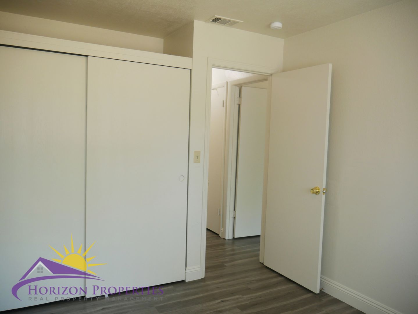 Near Grand Avenue and Marysville in Oak Ridge Acres, Sacramento, this cozy, one-story duplex offers two bedrooms and one full bathroom. This home has programmable central heat and air conditioning and security doors. The LVP entry opens onto overhead lighting, vaulted ceilings and dual pane windows with miniblinds and verticals throughout 800 square feet of living space. The living room and dining room have LVP flooring, overhead lighting and a slider to the rear yard.