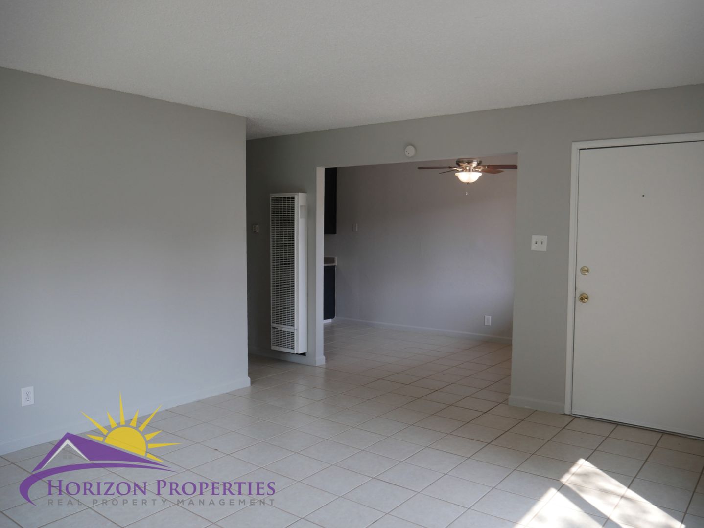 Near Sunrise Boulevard and Old Auburn Road in Terry Terrace, Citrus Heights, this bright, open, bottom floor, fourplex unit offers two bedrooms and one bathroom. This home has window air conditioning and wall heat. There is a security door. The tile entry opens onto custom paint and vertical blinds throughout 894 square feet of living space. The living room has tile flooring.
