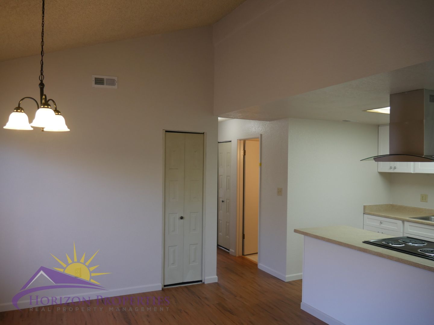 Near Florin Rd. and Stockton Blvd. in Sky Parkway, Sacramento this remodeled one-story duplex offers two bedrooms and two bathrooms. This home has central heating and air conditioning. The entry opens onto new laminate flooring, vaulted ceiling, and miniblinds throughout 1,000 square feet of living space. The living room has laminate flooring, vaulted open beam ceiling, and a decorative fireplace with tile hearth. There is also a dining room with overhead lighting.
