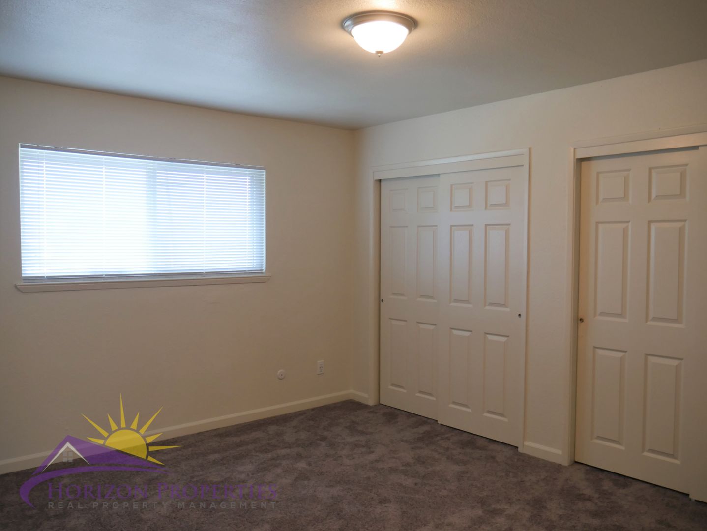 The first bedroom has carpet, overhead lighting, a linen closet and two double-door closets. The second bedroom has carpet and a double-door closet. The bathroom features laminate flooring, granite surround for tub and a granite topped vanity.