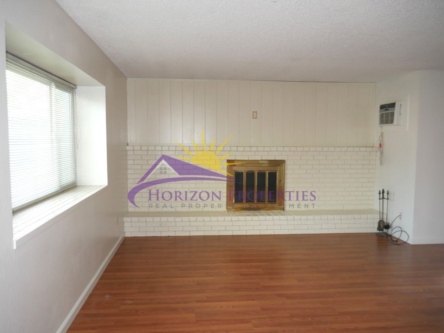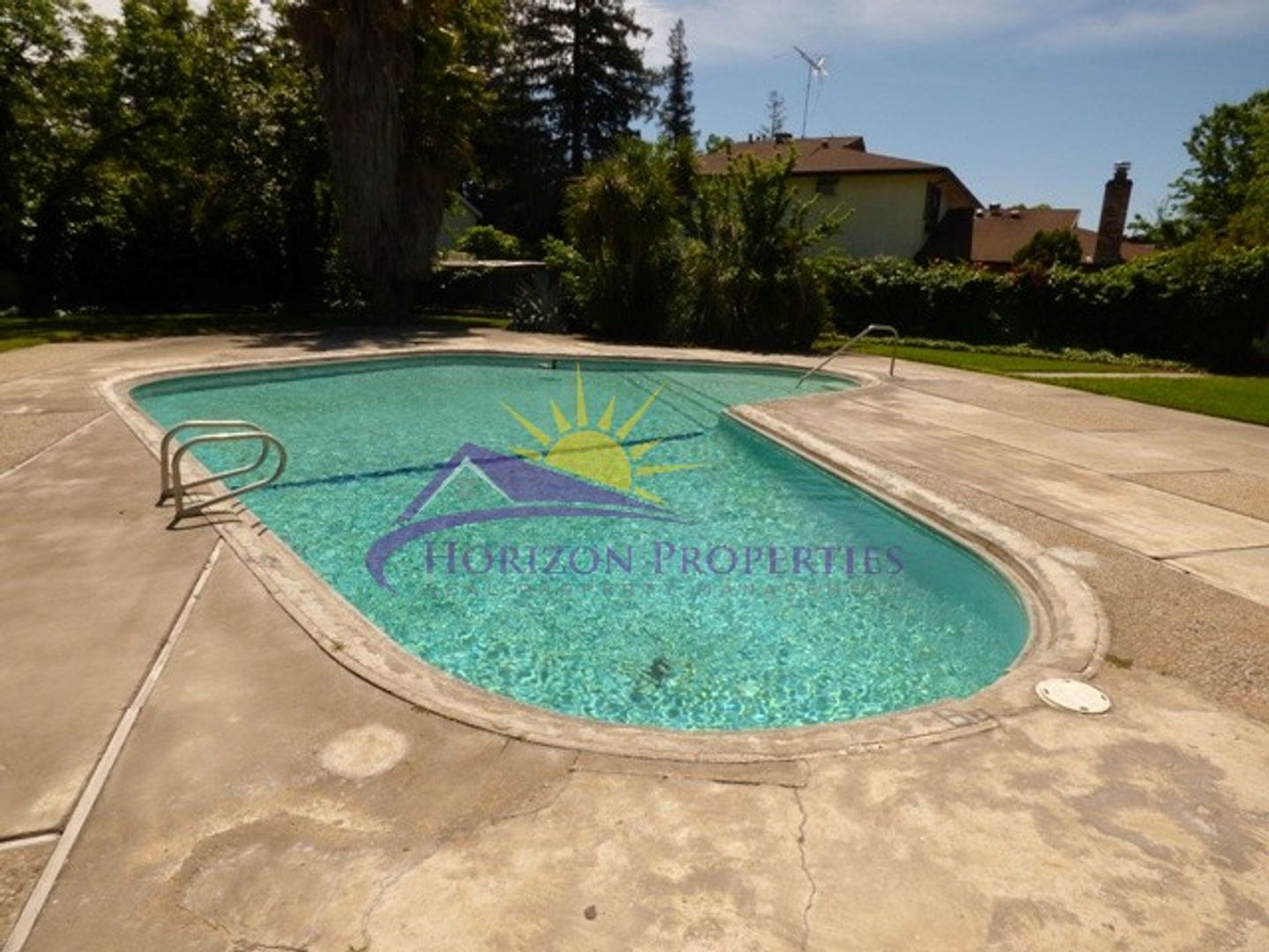 Near Northrop Avenue and Fulton Avenue in the Arden area, Sacramento, this fourplex unit offers two bedrooms and one bathroom. The tile and leaded glass entry entry opens onto laminate throughout 924 square feet of living space. The living room has a brick hearth with fireplace that runs the length of the wall. It also has a large tile plant shelf, built in cabinets and closet. The dining room has overhead lighting.