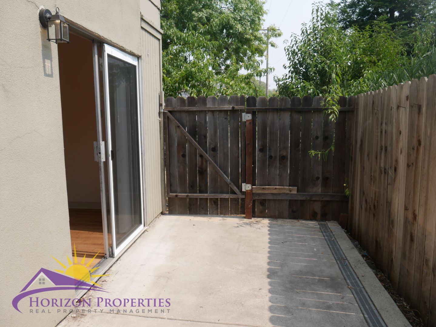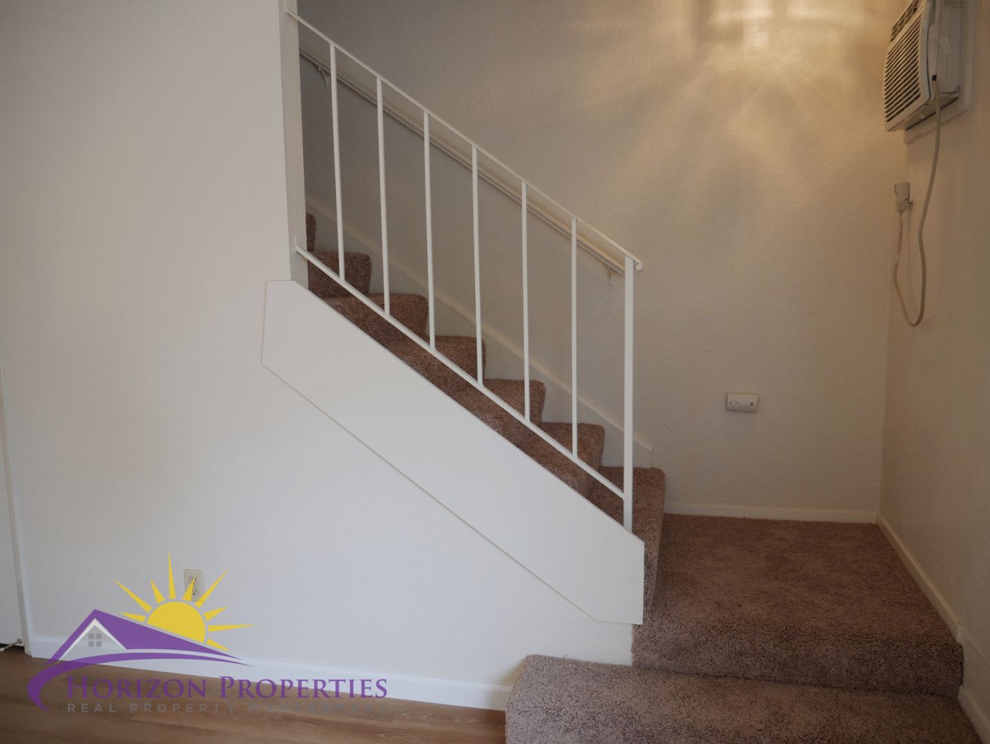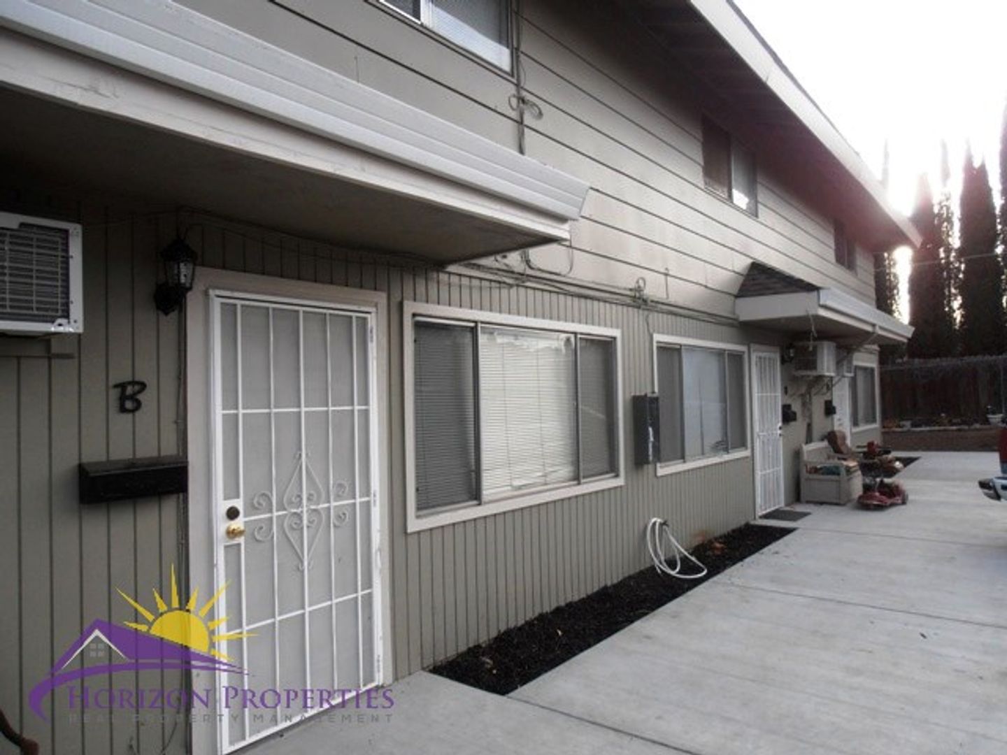 Near Natoma Street and Fargo Way in Sierra Woods, Folsom, this open, two-story fourplex offers two bedrooms and one full bathroom. This home has window air and wall heat. The entry has a security door and opens onto luxury vinyl plank flooring downstairs and beige carpeting upstairs, miniblinds and verticals throughout 918 square feet of living space. The living room has a closet under the stairs. The dining room has overhead lighting with ceiling fan and a sliding glass door to the rear patio.