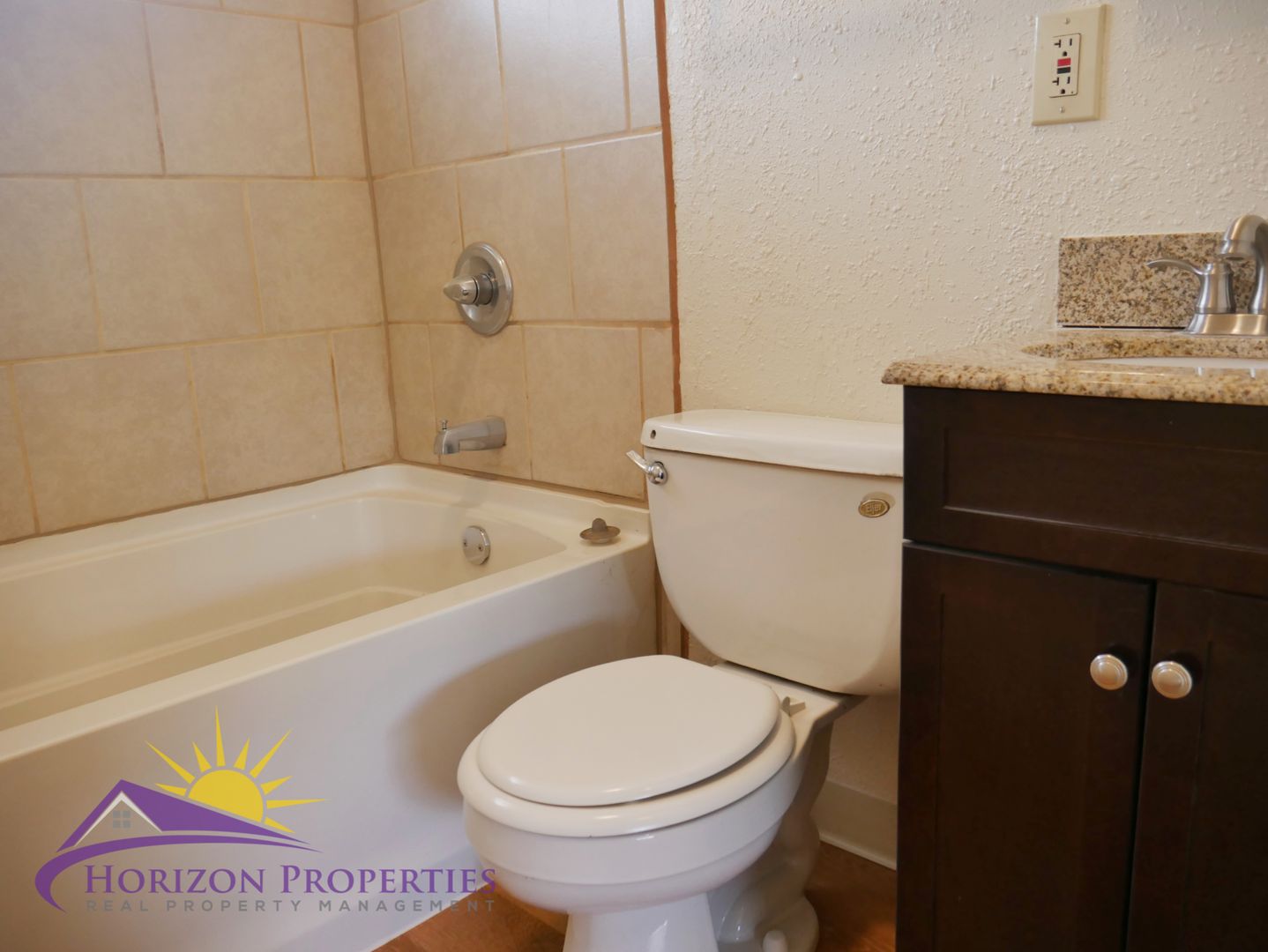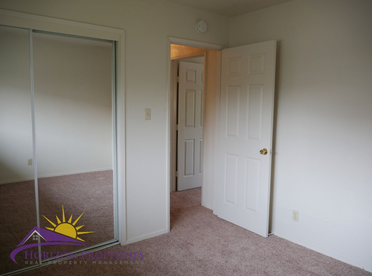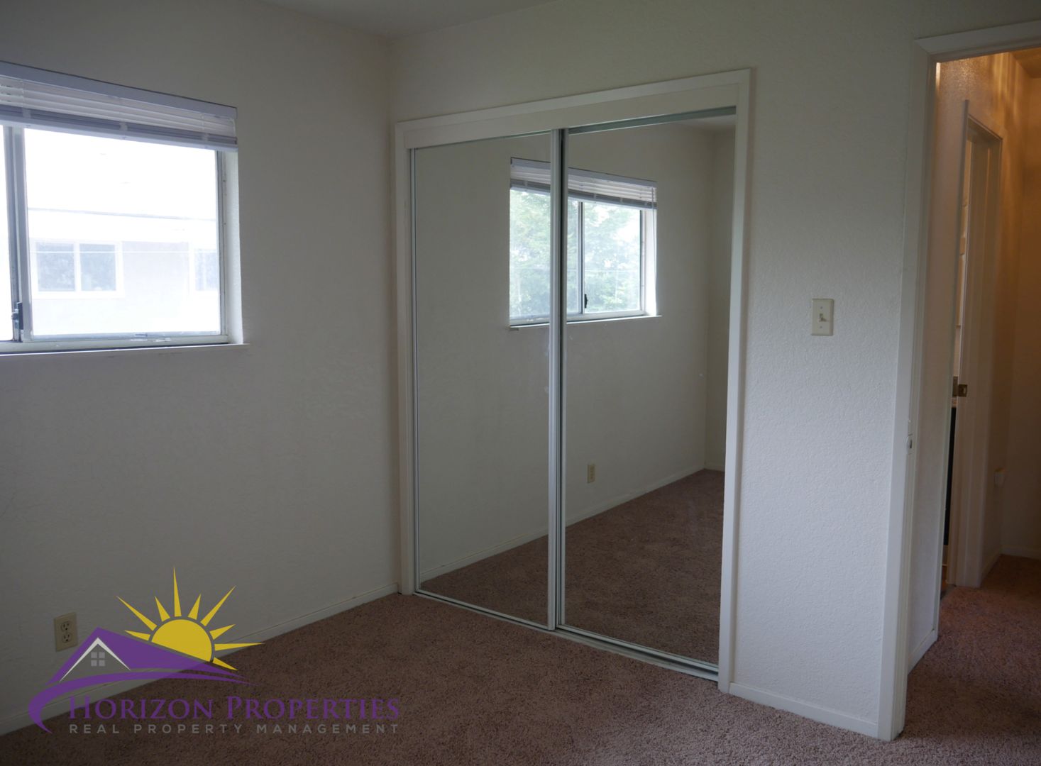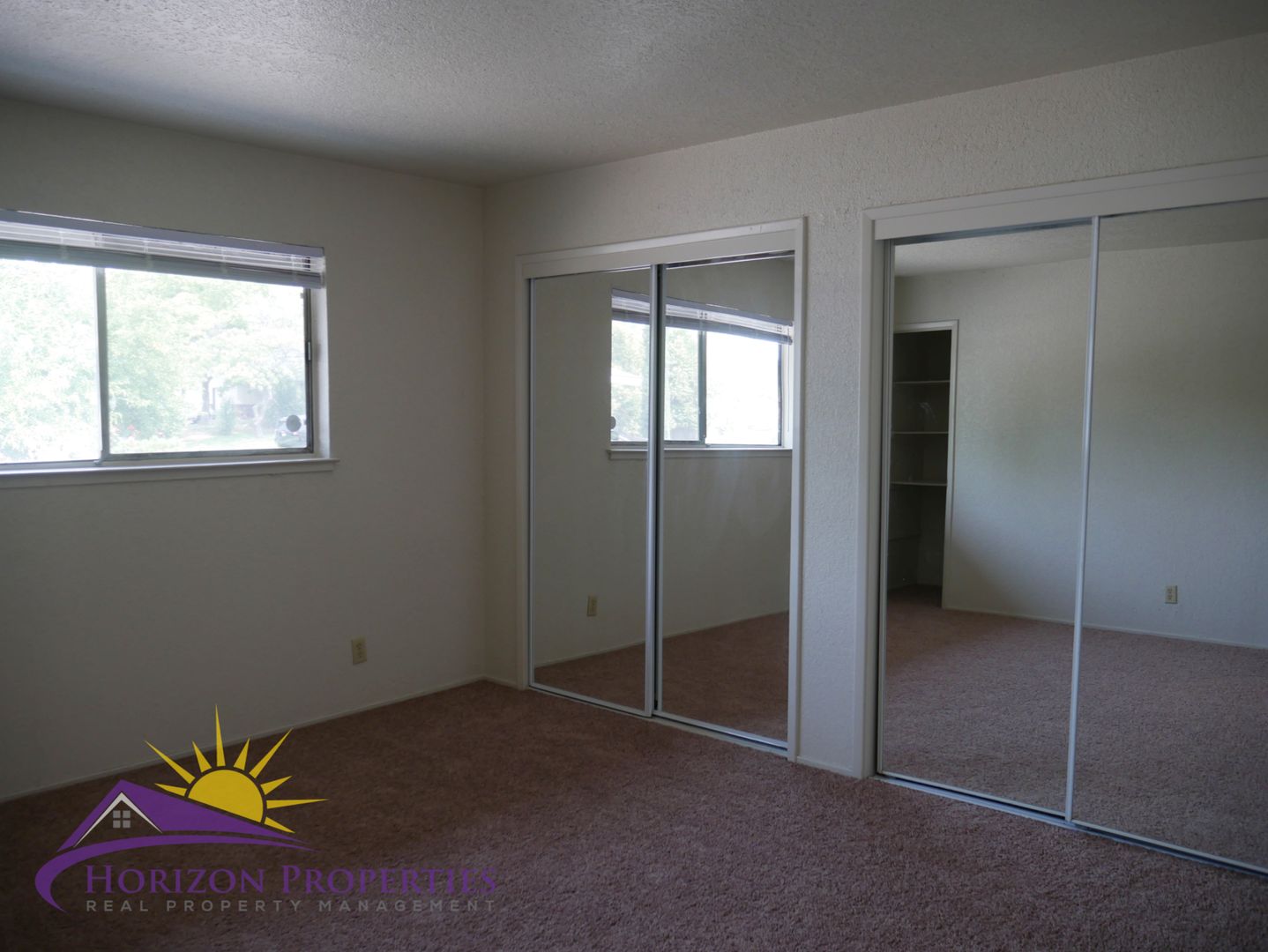 Both bedrooms and bathroom are located on the second floor. The first bedroom has a single door linen closet and two, mirrored double-door closets that take up a whole wall. The second bedroom has a double-door closet. The bathroom has tile flooring, shower over tub and a single vanity.