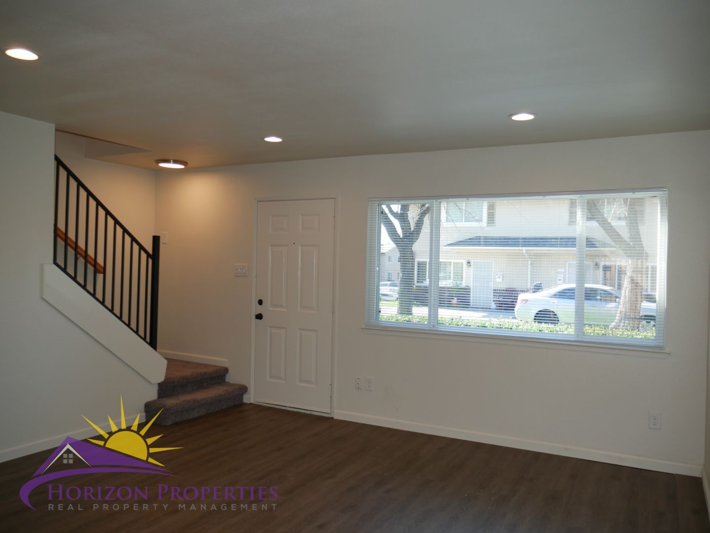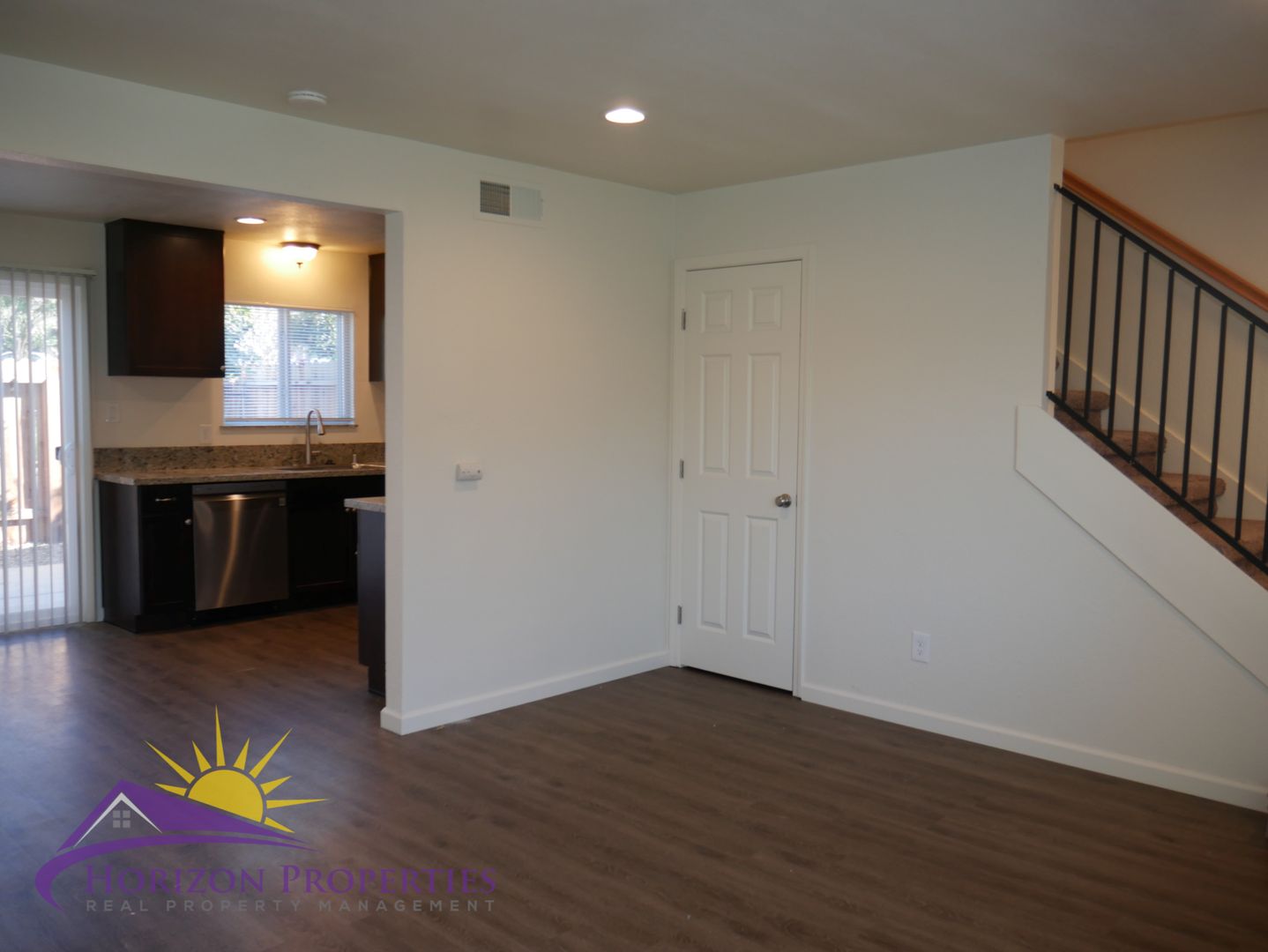 Near E. Natomas St and Fargo Way in Natomas Heights, Folsom, this remodeled, two-story fourplex offers two bedrooms and one full bathroom. This home has laminate on the first floor and carpeting on the second floor, central heat and air conditioning, dual pane windows with mini-blinds and verticals, six panel door with security door, recessed and overhead lighting throughout 900 square feet of living space. The living room has laminate flooring, recessed lighting and a single door closet. The dining room has laminate flooring, recessed lighting and a slider to the rear yard.