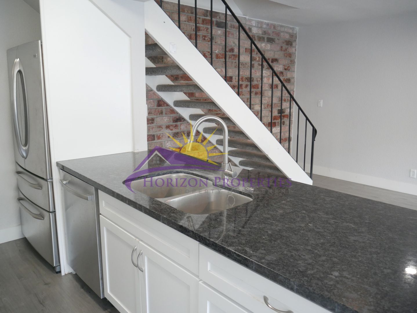Fully Remodeled 2 Bed 1 Bath 900sqft, two-story home near Garfield Ave and Auburn Blvd in Foothill Farms, Sacramento. This home has easy access to the I-80 freeway and close to multiple shopping centers. The home has central heating and air conditioning, within dual-pane windows and recessed lighting throughout the house. The spacious living area includes a wood burning fireplace and a dining space. The kitchen has granite countertops with decorative tile backsplash , soft close drawers and is equipped with stainless steel electric glass top range, microwave, dishwasher, double sink and a side by side refrigerator. Two large bedrooms are located upstairs with laminate flooring and walk-in closet. The bathroom is upgraded as well with tile flooring, shower and tub with decorative tile accents. There is a shared laundry area that is available free of charge in the back of the building. One assigned parking space with a locked cabinet is provided, additional parking available around the property. This home is located in the well-established San Juan School District. Owner pays for water, sewer and trash. Yard maintenance is HOA responsibility.