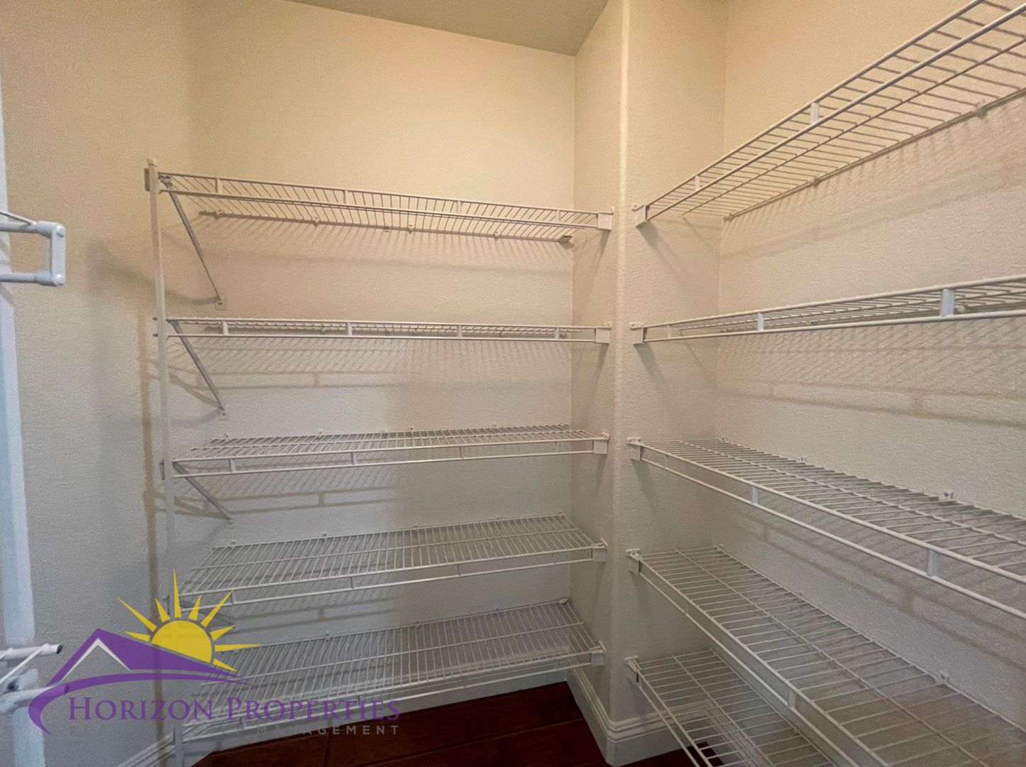 The first bedroom is located on the ground floor and has laminate flooring, overhead lighting and a walk-in closet. The first bathroom is located on the ground floor and has tile flooring, overhead lighting, tile walk-in shower with glass door and a granite vanity. The remaining bedrooms and bathrooms are located on the second floor. The primary bedroom has an angled double-door entry and a cathedral ceiling with designer chandelier. The primary bathroom has tile flooring, overhead lighting, tile Roman tub, tile walk-in shower with glass enclosure, granite dual vanity and large walk-in closet. The third and fourth bedrooms have laminate flooring, overhead lighting and double door closets. The fifth bedroom has laminate flooring, overhead lighting and a walk-in closet. The hall bathroom has tile flooring, overhead lighting, tile shower over tub and a granite dual vanity. There is a large walk-in closet with built-in shelving in the upstairs hallway.