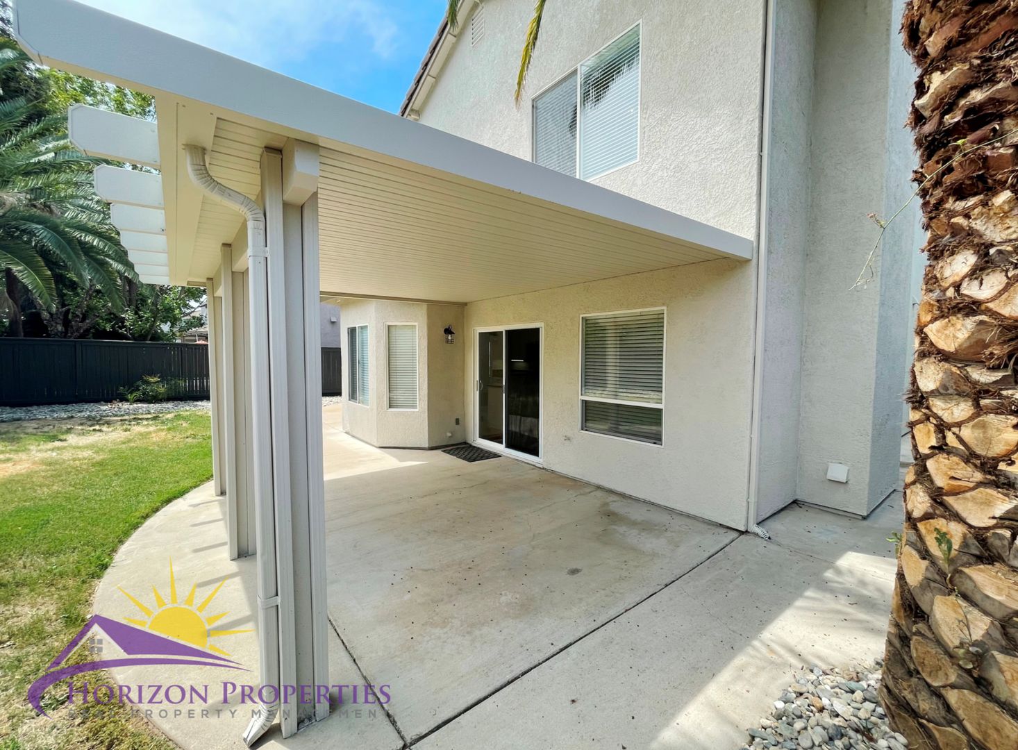 The laundry room is next to the ground floor bathroom and has tile flooring, overhead lighting, lots of cabinets and counter space, door to the two-car garage and is equipped with washer and dryer. The fenced, landscaped rear yard has a covered patio and is equipped with automatic sprinklers and citrus tree. The landscaped front yard has a covered patio and extra parking for a boat or small camper. Owner provides yard maintenance. This home is located in the Elk Grove Unified School District.